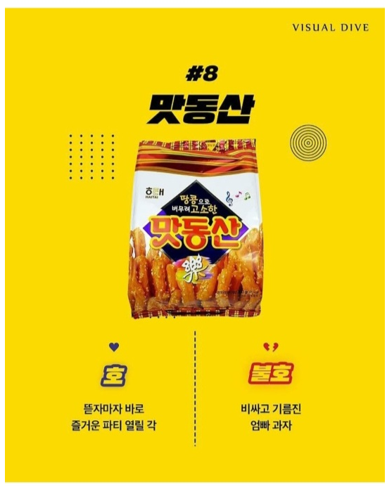 1. 🥒 오이맛 과자 시리즈 (ex. 오이맛 감자칩)