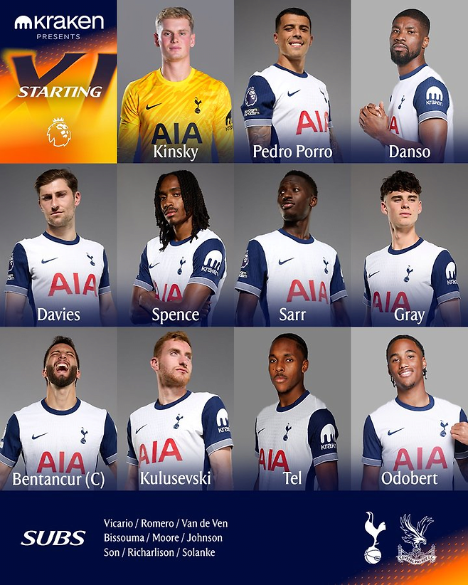 엔제 포스테코글루 감독이 이끄는 토트넘 홋스퍼는 11일 오후 10시 15분(한국시간) 홈구장인 토트넘 홋스퍼 스타디움에서 크리스탈 팰리스와 2024-25시즌 잉글랜드 프리미어리그 36라운드를 펼친다.
