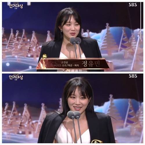 여자 조연상의 미니시리즈 장르/액션 부문 수상자로 호명된 정유민은 “‘커넥션’을 찍고 결혼을 하고 지금은 뱃속에 아기와 같이 왔다. 감사하다”라며 임신 소식을 알렸다.