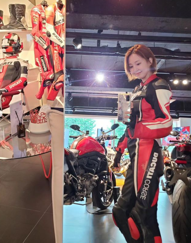 오정연은 2024년부터 공식 모터사이클 선수로 활동한다고 밝혔고 새프로필에서 블랙 가죽룩으로 시크하고 모던한 스타일링을 선보였다.