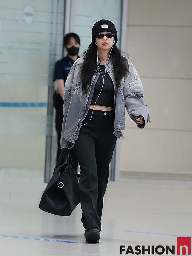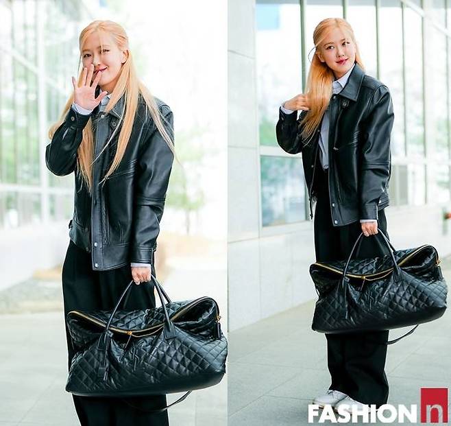 4. 블랙핑크(BLACKPINK) 로제(ROSE)는 3월 18일 대만 월드투어 행사 참석차 출국길에 레더 재킷과 오버사이즈 빅백이 조화를 이룬 블랙룩으로 공항패션을 완성했다.