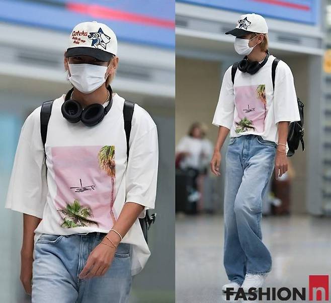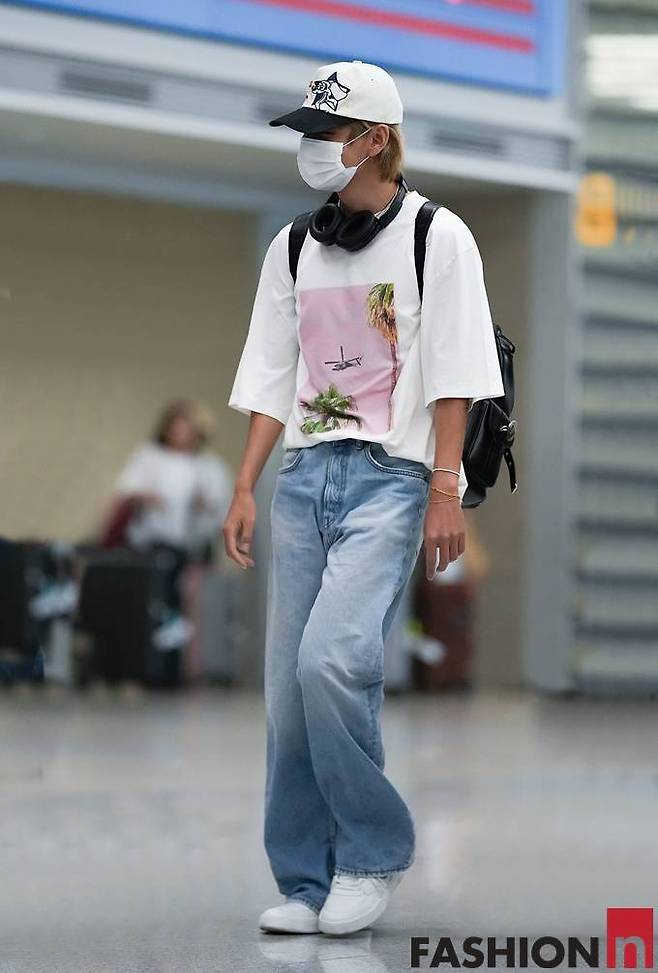 11. 방탄소년단(BTS) 뷔(V, 김태형)가 5월 16일 프랑스 파리 일정을 끝내고 데님 팬츠와 함께 티셔츠 턱잇(Tuck It) 스타일링으로 센스있는 입국패션을 연출했다.