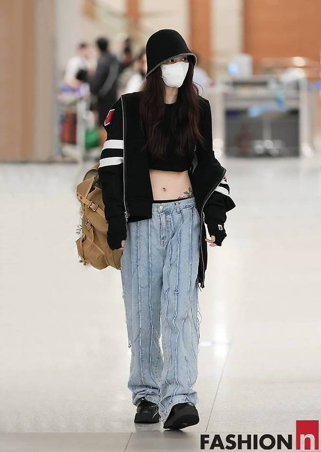 5. 배우 한소희는 4월 15일 미국 LA 디올쇼 일정을 마치고 돌아오는 입국길에 버킷햇과 마스크로 가렸지만 복근을 드러낸 애슬레저 일상룩으로 시선을 강탈했다.