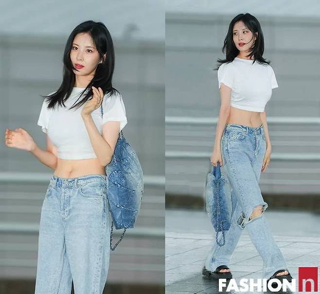 8.소녀시대 멤버 겸 배우 서현은 4월 27일 하와이로 출국길에 복근이 드러난 화이트 크롭티와 찢어진 청바지를 매치한 힙한 공항패션으로 시선을 사로잡았다. 여기에 데님 숄더백으로 스타일 엣지를 더했다.