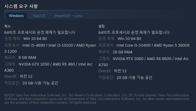 다만 이전 시리즈나 최근 출시한 비슷한 턴제 전략 게임들의 사례를 보면 4K 해상도는 최적화가 아쉬울 수 있겠고. 앉은 자리에서 오랫동안 플레이하는 게임의 특성 상, 메모리 누수 이슈가 발생할 수도 있으므로 32GB 메모리를 맞춰 두는 것도 추천 드립니다.