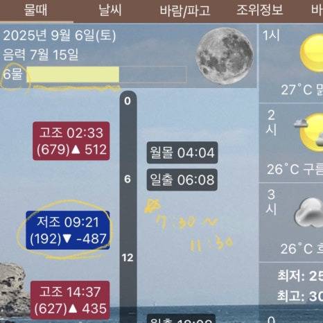 물때와 조류 세기에 따라 선택 기준을
