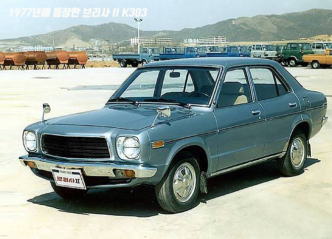 한편 기아에서 내놓은 소형 세단 브리사는 1976년에 1.300cc엔진으로 바뀌고, 포니처럼 4개의 헤드라이트를 달기도 합니다. 1977년에는 K303이라고도 불렸던 브리사 II도 나옵니다. 브리사 II는 세단과 함께 웨곤형 모델도 나왔는데요, 전체적으로 포니가 직선적이었다면 브리사 II는 곡면을 많이 쓴 차체 형태를 가지고 있었습니다.