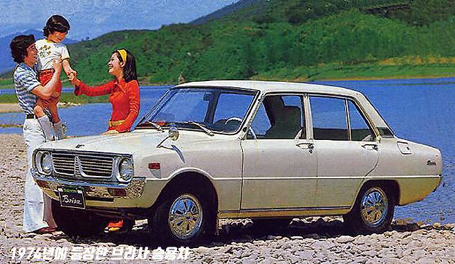 이 시기에는 기아산업에서도 소형 승용차를 개발하기 시작해서 1974년에는 마쓰다에서 들여온 소형 세단 파밀리아를 브리사(Brisa; 스페인어로 산들바람)라는 이름으로 내놓습니다. 985cc배기량이었던 브리사는 1,200cc 엔진의 포니가 나오기 전까지 자가용과 택시로 팔리면서 거의 국민차와 같은 역할을 했습니다.