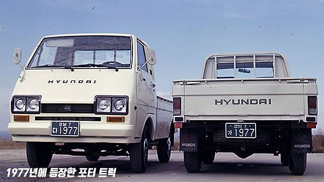 1977년에는 현대에서 포니의 디자인을 모티브로 디자인한 1톤 트럭 고유모델 포터가 등장해서 오늘날까지 이어진 포터 트럭의 역사가 시작됩니다.