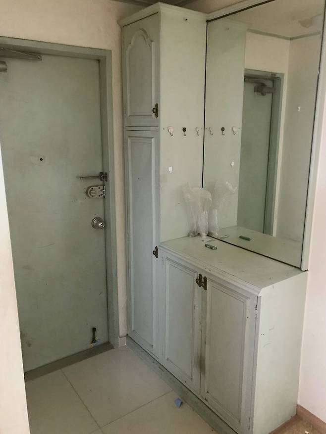 방문, 신발장, 집이 온통 민트색이어서 화이트로 덮기 위해 젯소도 페인트도 여러 번 칠했던 기억이 나요.