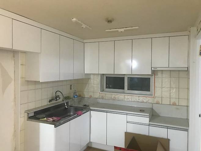 업체에서 시공한 부분은 새시, 도배, 장판이고 나머지는 셀프로 인테리어했어요. 저희 부부가 셀프로 인테리어한 부분은 페인트칠(현관문, 신발장, 방문, 베란다, 천장 몰딩), 손잡이 교체, 걸레받이, 화장실 부분 교체, 주방 타일이에요.