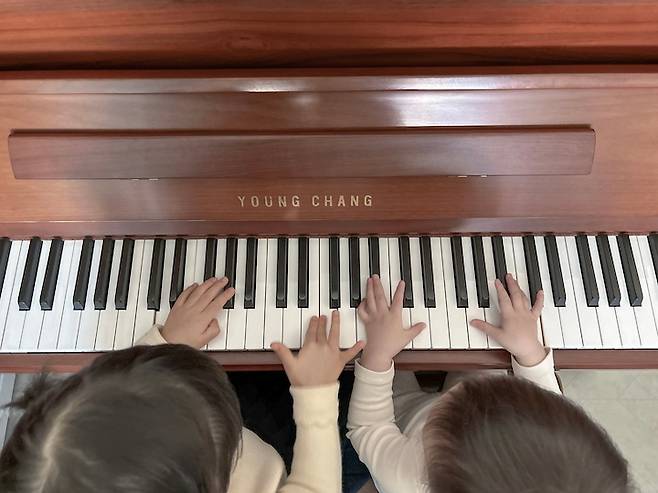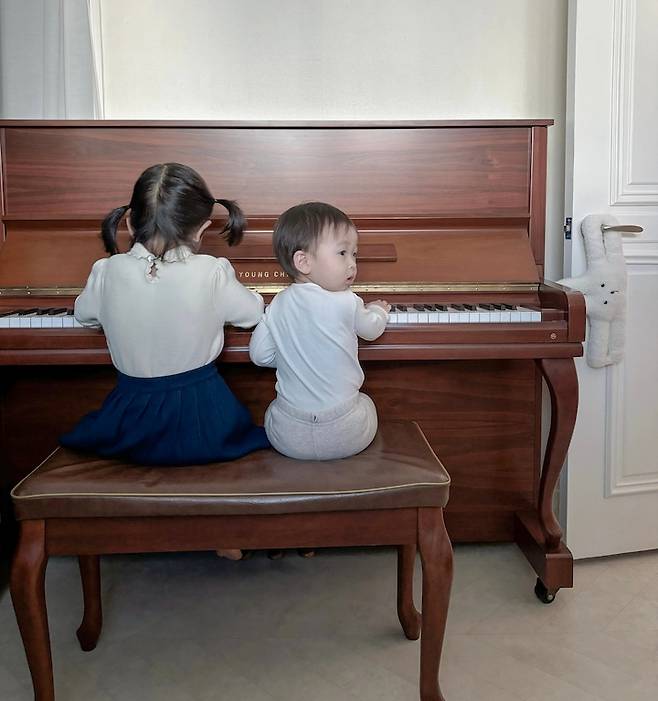 둘이 앉아 꽁냥꽁냥 건반 두드리는 모습이 꽤 귀엽죠?