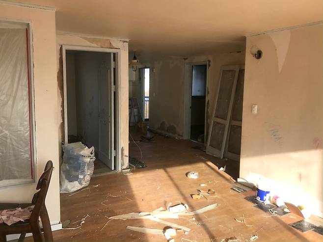 지금 거주하는 공간은 거실과 침실1이 넓은 오래된 구축 아파트에요. 노후된 아파트에다 관리가 너무 안되어 있어서 처음엔 걱정이 가득했는데 신혼집이니 꼭 필요한 부분 위주로 깨끗하고 단정하게 고쳐보자!하고 반셀프 인테리어를 시작했어요.