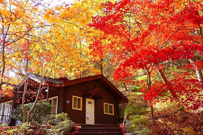 시원한 계곡이 흘러 더욱 운치 있는 오도산 자연휴양림인데요. 해발 1,133m의 오도산에 위치한 자연휴양림으로, 가을 캠핑장으로 제격입니다.