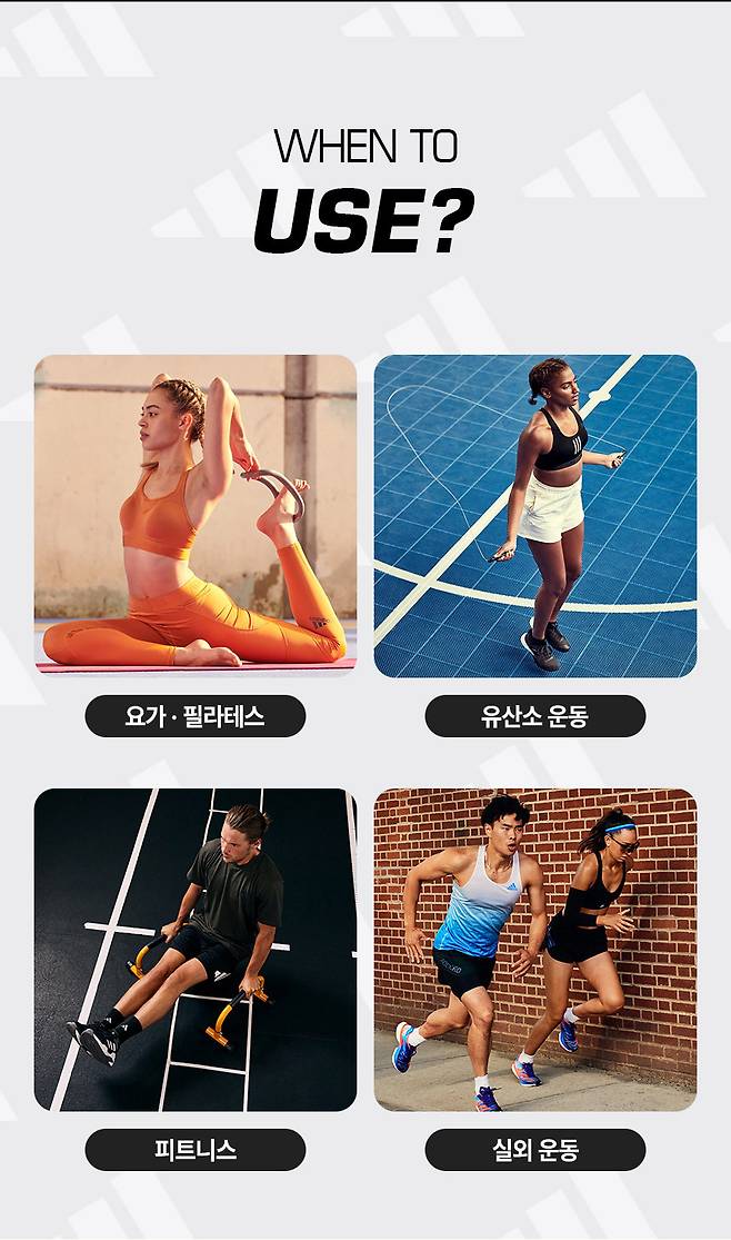 요가, 필라테스, 유산소 운동, 피트니스, 실외 운동 등 다양한 활동에 활용가능합니다!
