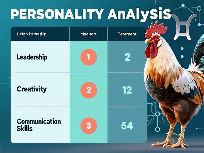 2. 강한 인내력: 닭띠 특유의 끈기와 금 오행의 자제력이 결합되어 어려운 상황에서도 포기하지 않는 강인함을 보인다.