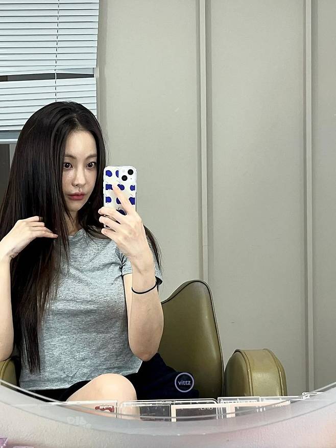 오연서는 기본 그레이 티셔츠에 블랙 미니 팬츠를 매치해 미니멀리즘의 정수를 보여줬다. 티셔츠는 바디 라인을 자연스럽게 감싸는 슬림핏으로, 전체적으로 깔끔하면서도 단정한 실루엣을 연출한다. 팔에는 얇은 블랙 헤어밴드를 소품처럼 착용해 스타일에 실용적인 포인트를 더했다. 긴 생머리는 드라이 없이 자연스럽게 내려, 그녀만의 꾸안꾸 무드를 완성했다.
