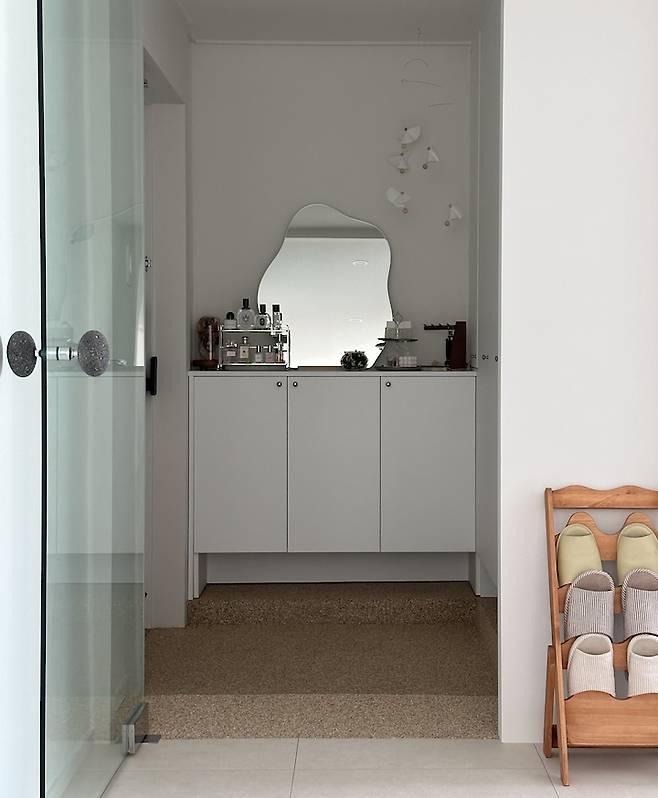 평수에 비해 좁은 현관이라 티가 날까 싶어 고민이 되긴 했는데 그래도 콩자갈은 어딘가에 꼭 한번 넣어보고 싶더라고요.