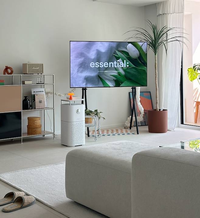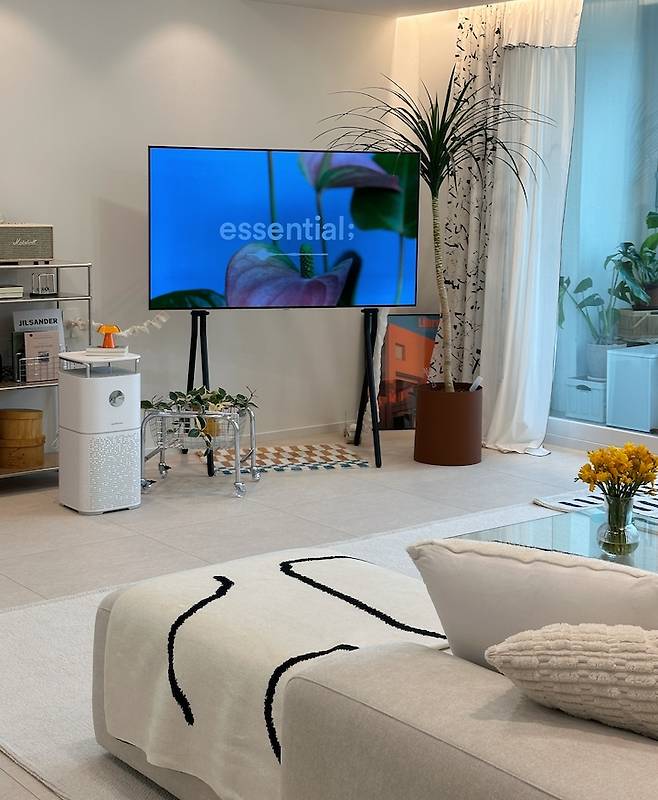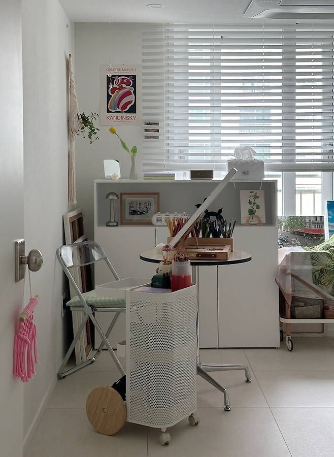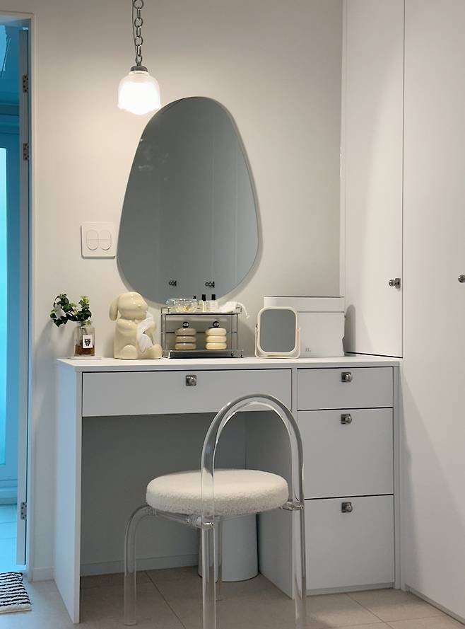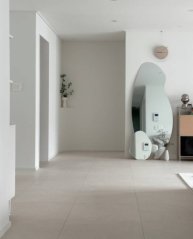 그래서 따로 아트월이나 포인트가 될 만한 벽 시공은 하지 않았고, 가전이나 가구들도 어느 한곳에 고정하지 않고 자유롭게 이동할 수 있도록 해두었답니다.