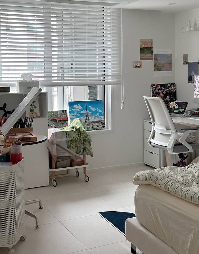 발코니가 확장되어 있지 않아서 홈짐으로 쓰는 방보다는 작지만 그래도 구축 특성상 방들이 전부 넓게 빠져있어서 이전 집에서 쓰던 책상이나 서랍장 같은 가구들을 그대로 가져와서 넣었더니 뭔가 귀여워 보이더라고요...?