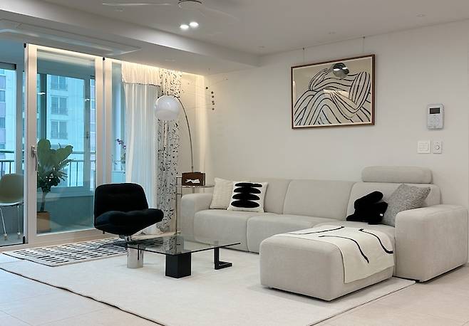 저희는 아이가 없다 보니 외출하지 않는 대부분의 시간을 거실에서 보내는데요, 그렇다 보니 거실은 최대한 편안한 가구들로 차분한 분위기를 선호하고, 지루하다 싶을 때면 가구 배치들을 자주 바꿔주는 편이에요.