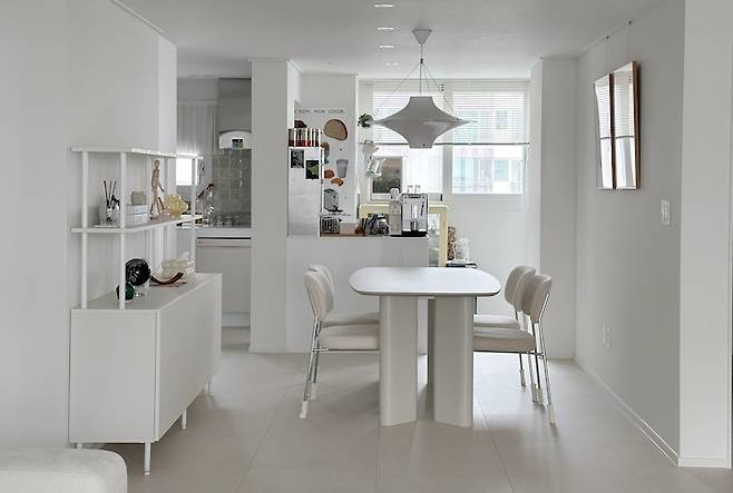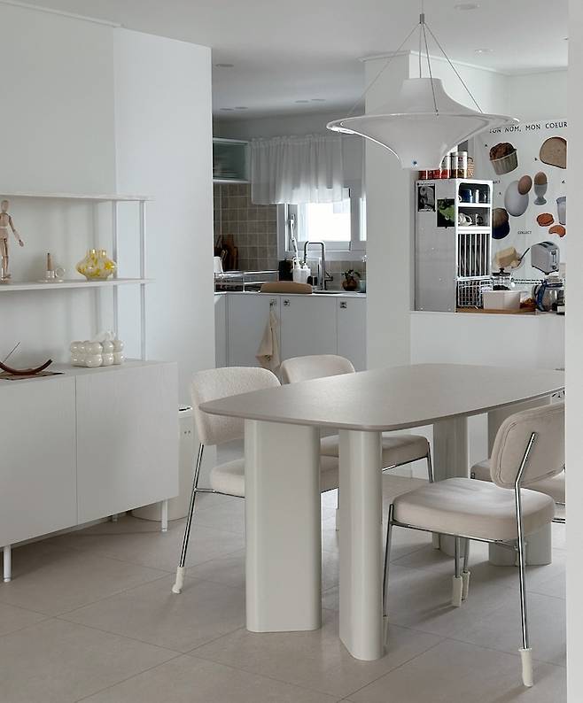 지금은 오히려 함께하는 식사에 더 집중할 수 있고 좋더라고요. 다행히 다이닝 공간은 꽤 넉넉한 편이라 큼직한 식탁을 놓을 수 있었어요!