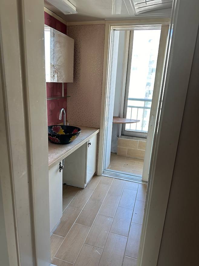 만약 예산이 더 넉넉했다면 외부 발코니를 확장하고 안방 욕실을 더 크게 만들고 싶었지만, 구조는 건드리지 않기로 했기 때문에 외부 발코니는 창고로 사용할 수 있도록 타일과 샷시(새시)만 깔끔하게 하기로 했어요.