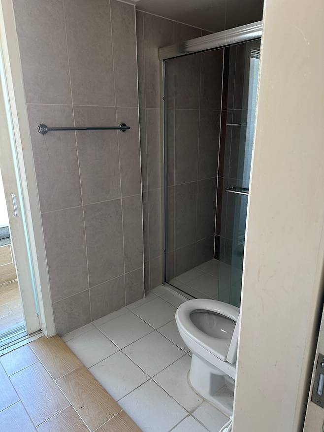 정말 시작부터 우여곡절이 많았던 공용 욕실인데요, 중세 시대 같았던 과거의 모습들을 모두 뜯어내고 방수 작업부터 꼼꼼하게 진행한 욕실이에요. 서브로 사용하는 안방 욕실에 욕조를 설치해두어서 메인으로 사용할 공용 욕실은 편의를 위해 샤워 부스를 설치했어요.