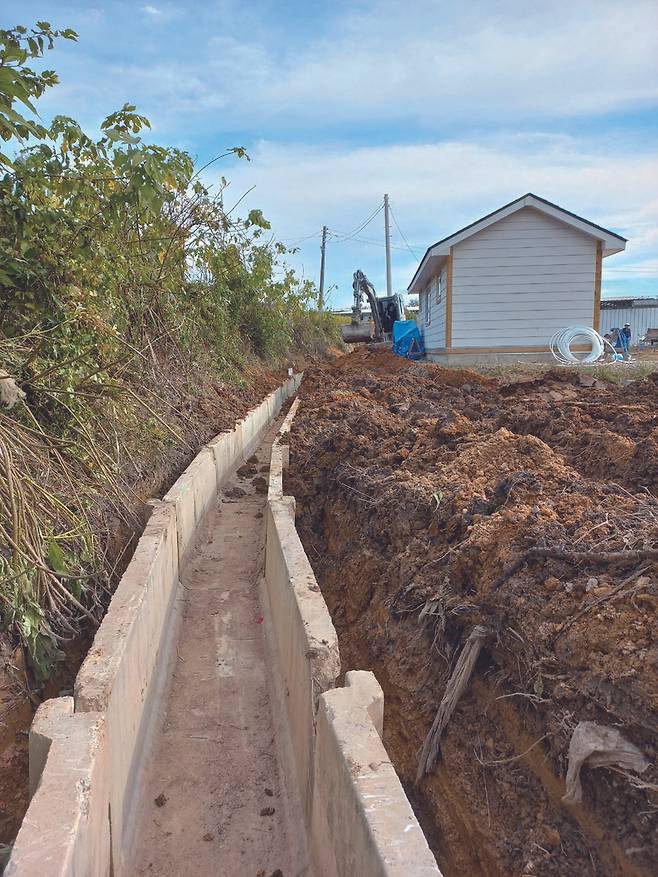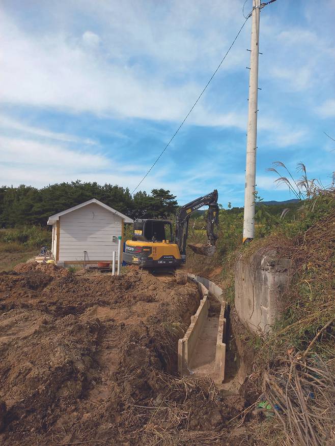 마지막으로, 기초공사에는 많은 비용이 든다. 나의 경우만 봐도 집터를 잡석으로 다지고 집이 들어설 곳에 콘크리트를 타설하고, 정화조와 하수도관, 상수도관을 마당에 묻는 기초공사 비용으로 715만원이 들었다. 수도 인입 비용은 10m당 약 100만원으로 총 353만원이 들었다. 이후 집터 둘레 U관 매설에 약 180만원, 정화조 재매설에 58만원, 그 위 포장에 44만원 등 기초공사 비용으로 1,347만원이 들었다. 11평 집을 짓는 데 들인 총비용 3,976만원의 1/3 가량이나 들어간 것이다.