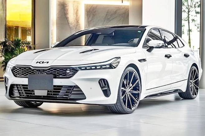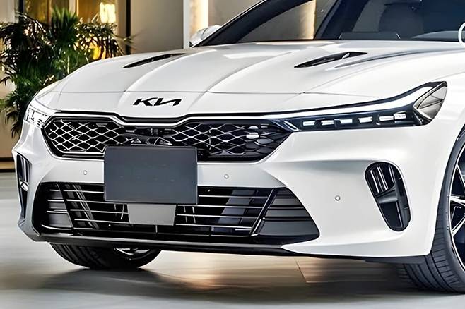 해외의 한 렌더링 아티스트가 공개한 K9 상상도는 기존 디자인을 현대적으로 재해석한 모습입니다. 특히 라디에이터 그릴은 축소되었으며, 기아 특유의 타이거 노즐 형상이 적용되었습니다. 그릴 내부는 그물망 패턴으로 정교하게 디자인되었으며, 공기 흡입구는 넓고 사다리꼴 형태로 변경되었습니다.