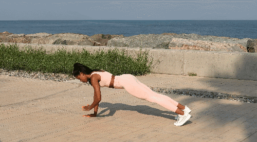 플랭크 자세로 엎드리세요. 왼손으로 몸을 버티면서 오른손을 들어 왼쪽 어깨를 터치합니다. 다시 오른손을 제자리로 돌아갑니다. 이번에는 오른손으로 몸을 버티면서 왼손을 들어 오른쪽 어깨를 터치합니다. 다시 왼손을 제자리로 돌아갑니다.