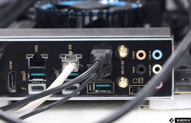 ASUS ProArt Z790-CREATOR WIFI의 네트워크 사양은 막시무스 시리즈와 차이가 없다. 2개의 이더넷 포트 중 1개는 10Gbps를 제공하는 마벨 AQtion 컨트롤러를 사용했고 나머지 한 개에도 인텔 2.5Gbps 컨트롤러가 사용됐다.