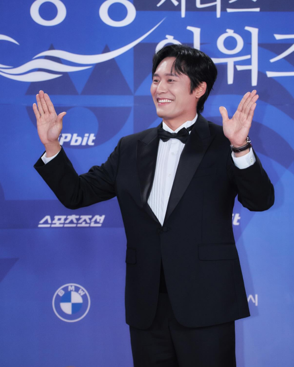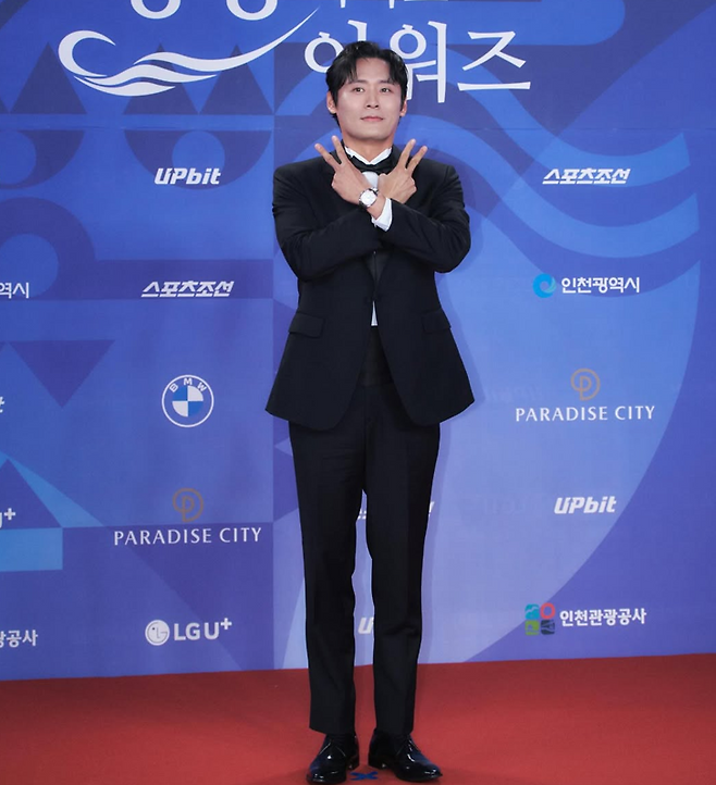 최대훈은 최근 시상식에서 블랙 수트룩을 선보이며 멋스러운 모습을 뽐냈습니다. 블랙 자켓에 블랙 슬랙스를 매치하고, 블랙 구두를 신어 세련된 느낌을 강조했으며, 안에는 화이트 셔츠를 입어 깔끔하고 정돈된 룩을 완성했습니다.