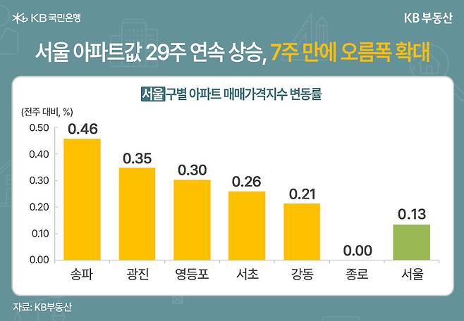 서울, 29주째 상승·7주 만에 오름폭도 확대… 송파·광진·영등포 강세