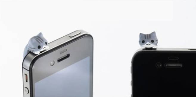 이후에 나온 스마트폰의 이어폰 단자가 기기 하단으로 이동했어요. 앞서 말한 이어캡을 장착하면 꽤 우스꽝스러운 모습을 볼 수 있었습니다. 바닥면에 박쥐처럼 매달려 방긋 웃고 있는 고양이, 머리가 아닌 턱에 피부 트러블처럼 붙은 왕관 등등..