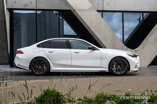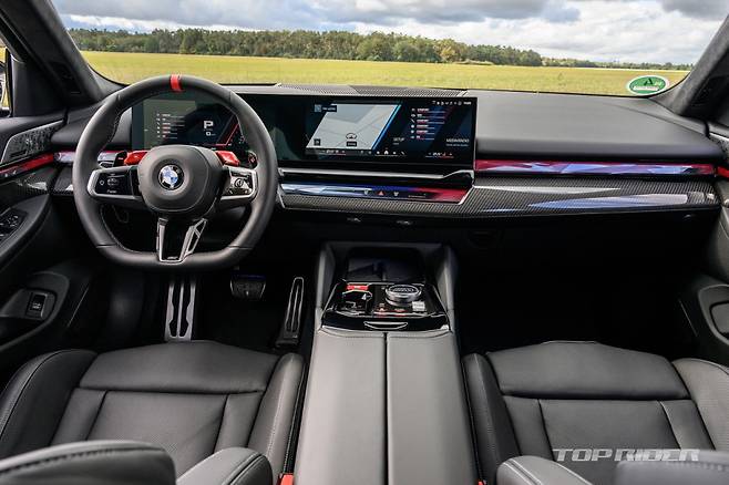 신형 M5 외관에는 카본으로 제작된 보디킷이 탑재됐다. M 카본 루프는 파노라믹 글라스 루프 대비 30.5kg 경량화로 무게 중심을 낮춰준다. 실내에는 레이스카에서 영감을 얻은 디자인이 적용됐다. M 전용 스포츠 배기 시스템, 최신 ADAS, 4-ZONE 공조기 등을 제공한다.
