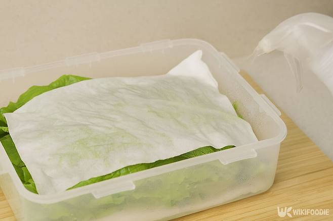 먼저 밀폐용기 바닥에 물에 적신 면포나 키친타올을 깔고, 그 위에 상추를 겹겹이 펼쳐 담은 뒤 다시 젖은 면포를 한 겹 더 덮어준다. 덮은 후에는 분무기로 물을 뿌리거나, 물에 적신 면포를 살짝 짜서 덮어도 괜찮다. 이후 뚜껑을 덮고 냉장고의 채소 칸이나 문 쪽에 넣어 보관하면 된다.