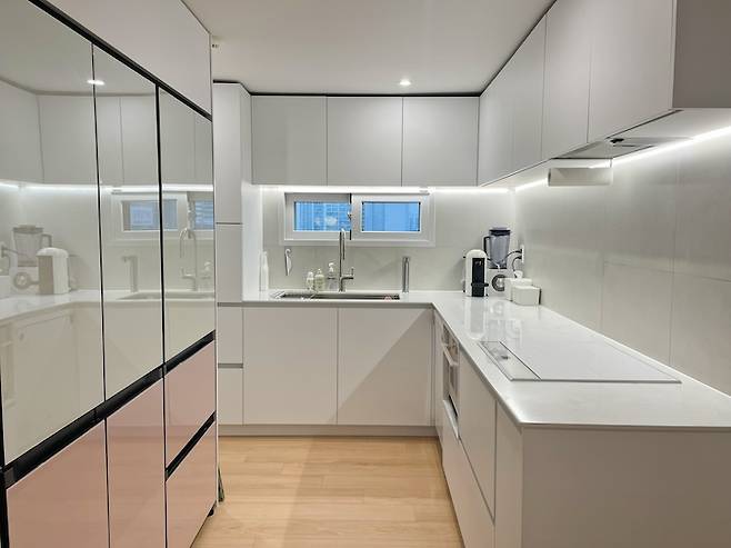 결론적으로 남편의 적극적인 의견에 의해 상부장까지 아주 꽉~채운 주방으로 시공하였습니다. 아주아주 만족하고 있습니다. 생각보다 주방 살림이 많더라구요.