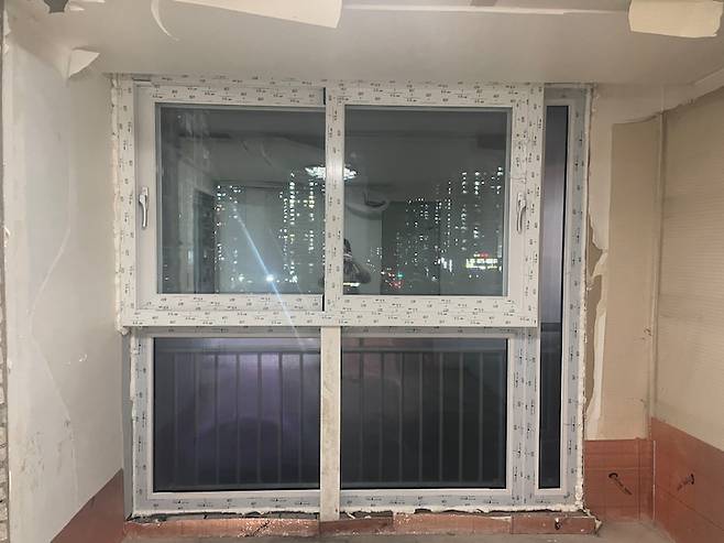 날개벽에 한이 맺혀서 매수 전 비내력벽이라는 것을 확인했답니다 :) 비내력벽을 철거 후 안정감을 주기 위해 창줄임 시공도 함께 진행하였습니다. 시스템 픽스창으로 하부를 고정하여 창문을 반으로 줄였는데요.