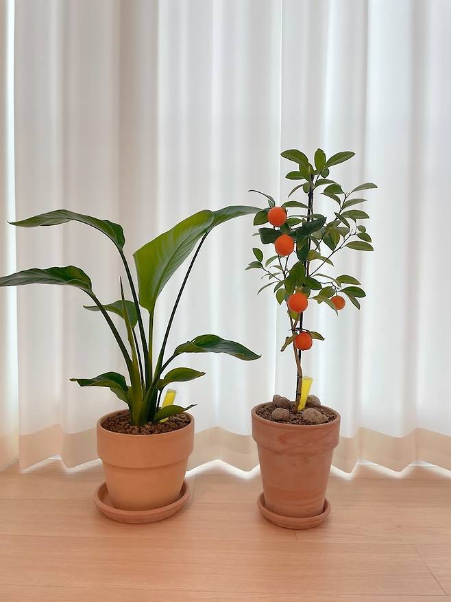 이 친구들은 집들이 선물로 받은 극락조와 오렌지 레몬 나무예요. 집안에 식물이 없었을 때 보다 훨씬 아늑하고 활기가 있어 보이네요.