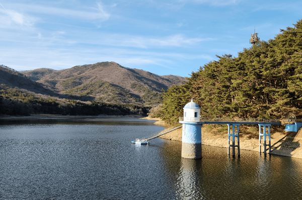 법기수원지 주변에는 초록빛 호수를 따라 산책로가 조성되어 있어 고요한 분위기 속에서 아름다운 풍경을 즐길 수 있는데요. 이곳은 사계절 내내 각각의 매력을 보여주는 만큼 평화로운 분위기에서 힐링을 즐기기에 좋으니 참고하시면 좋겠습니다.