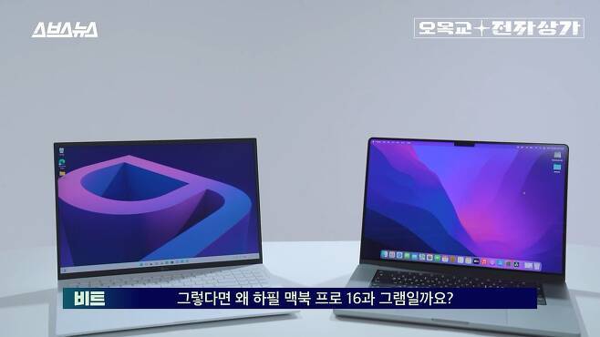 '맥북 프로 16인치(M1 Pro)'와 비교해보았습니다.