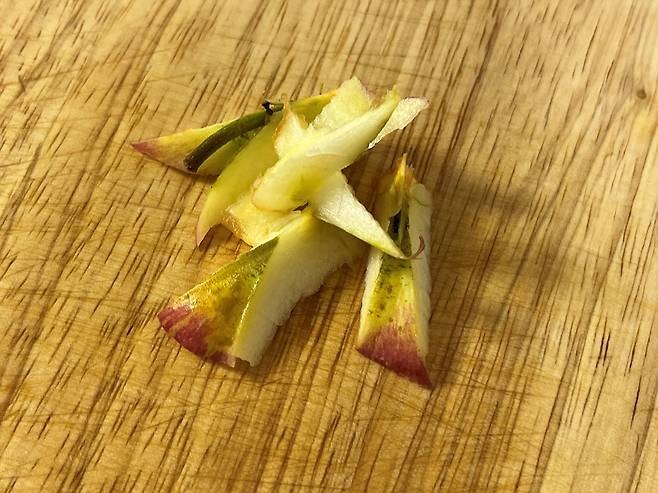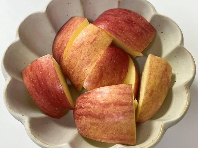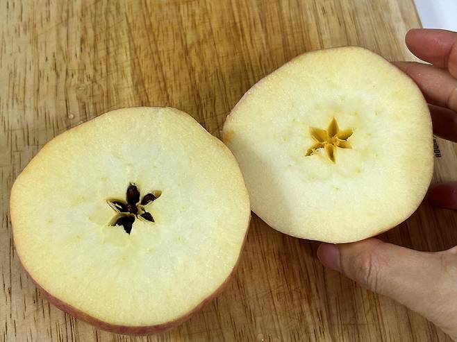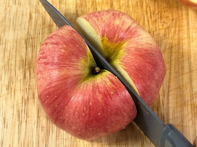 모양도 일반적으로 사과를 잘랐을 때와 별반 다르지 않습니다. 사과, 이제는 절대 세우지 말고 눕혀서 자르세요!