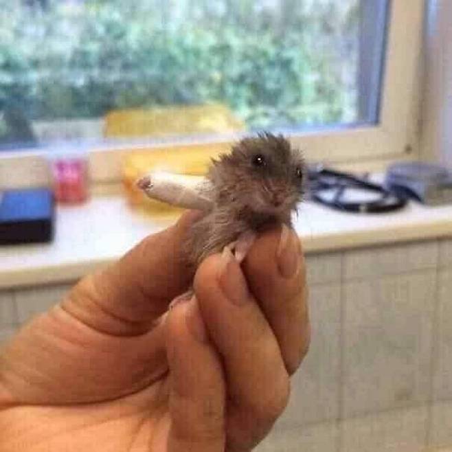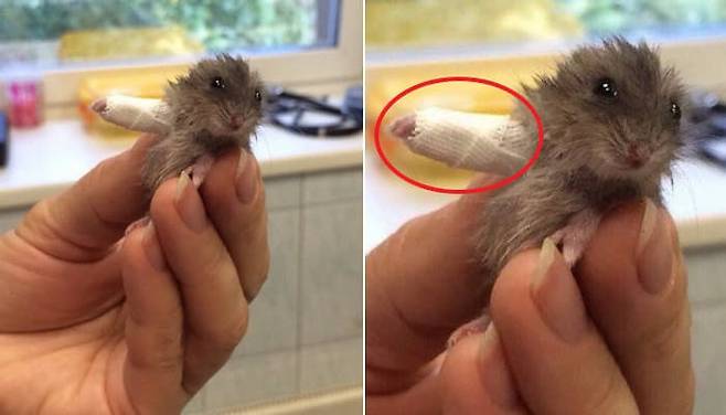 햄스터가 팔이 부러져 깁스를 하고 말았는데요