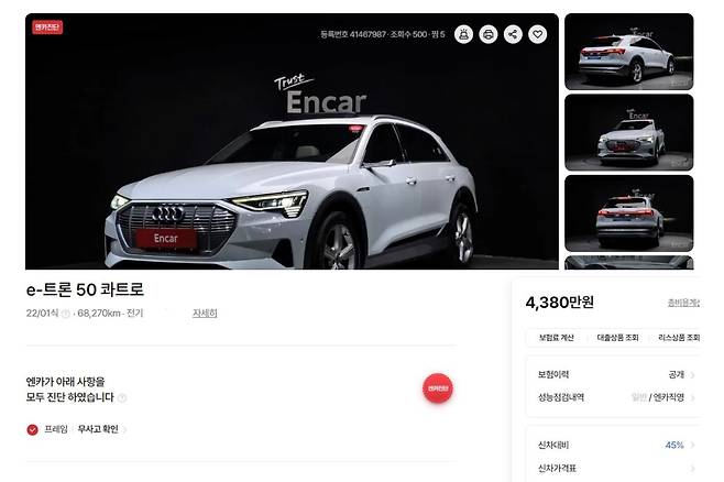 1억 원이라는 숫자가 무색하다. 아우디 e-트론의 잔존 가치가 4년 만에 60% 가까이 증발했다. 2022년식 매물이 4,300만 원대에 올라온다. 누군가에게는 가슴 쓰린 폭락이다. 하지만 누군가에게는 프리미엄 진입의 문턱이 낮아진 셈이다.