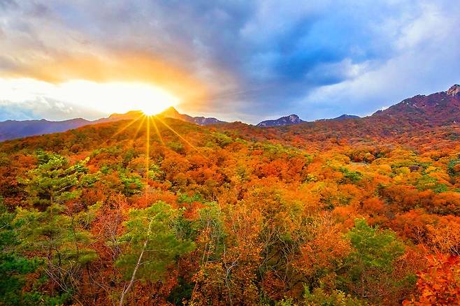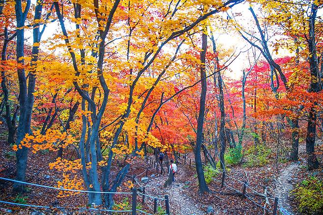 도봉산의 가을 단풍은 11월 초에 절정을 이루며, 바위 틈 사이로 자란 단풍나무가 형형색색의 화려한 색감을 선사합니다.