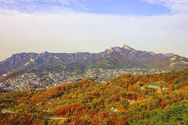 북악산은 서울 한양도성의 일부로서 역사적인 의미와 더불어 조용한 산책을 즐기기 좋은 곳입니다.