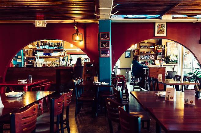 왠지 모르게 셔츠 단추를 하나 더 풀어야 할 것 같은 분위기의 펍(Pub). 모사스 조인트는 자유분방하고 나른한 분위기가 매력적이다. 매장에 들어서면 곧장 보이는 TV 속에는 이름 모를 축구 경기가 진행 중이고, 바 옆쪽으로는 터프한 인테리어의 홀 매장이 나온다.