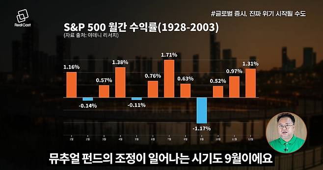 9월은 글로벌 증시 기준으로 우호적인 시즌이라 보기 어렵습니다. 미국의 경우 법인세 납부를 위한 현금 수요가 증가하고, 뮤추얼펀드의 분기·반기 리밸런싱이 맞물리면서 매물 부담이 커지는 경향이 있습니다. 이러한 수급 요인은 단기적으로 주가 변동성을 키우는 재료로 작동합니다.