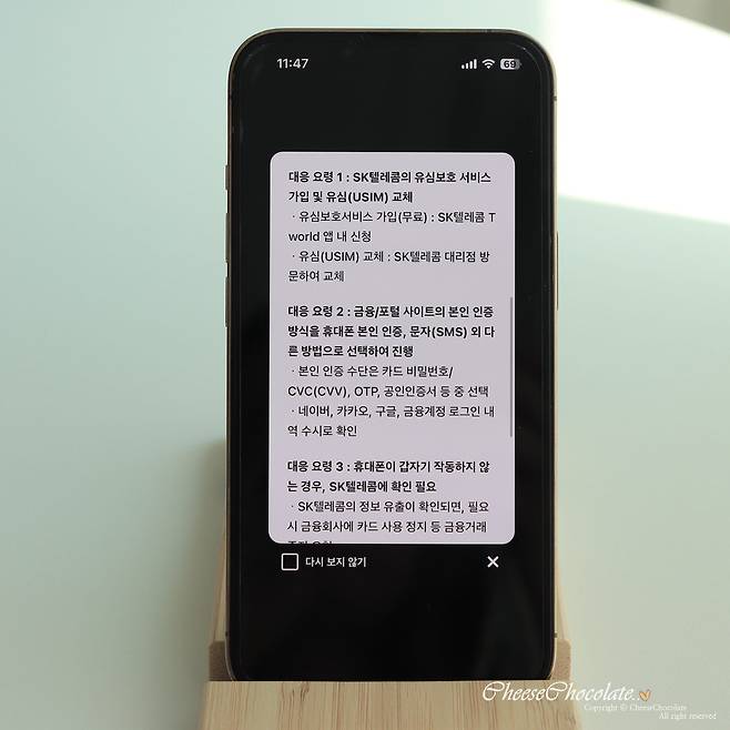 그렇기 때문에 SKT 유심 교체 전까지는